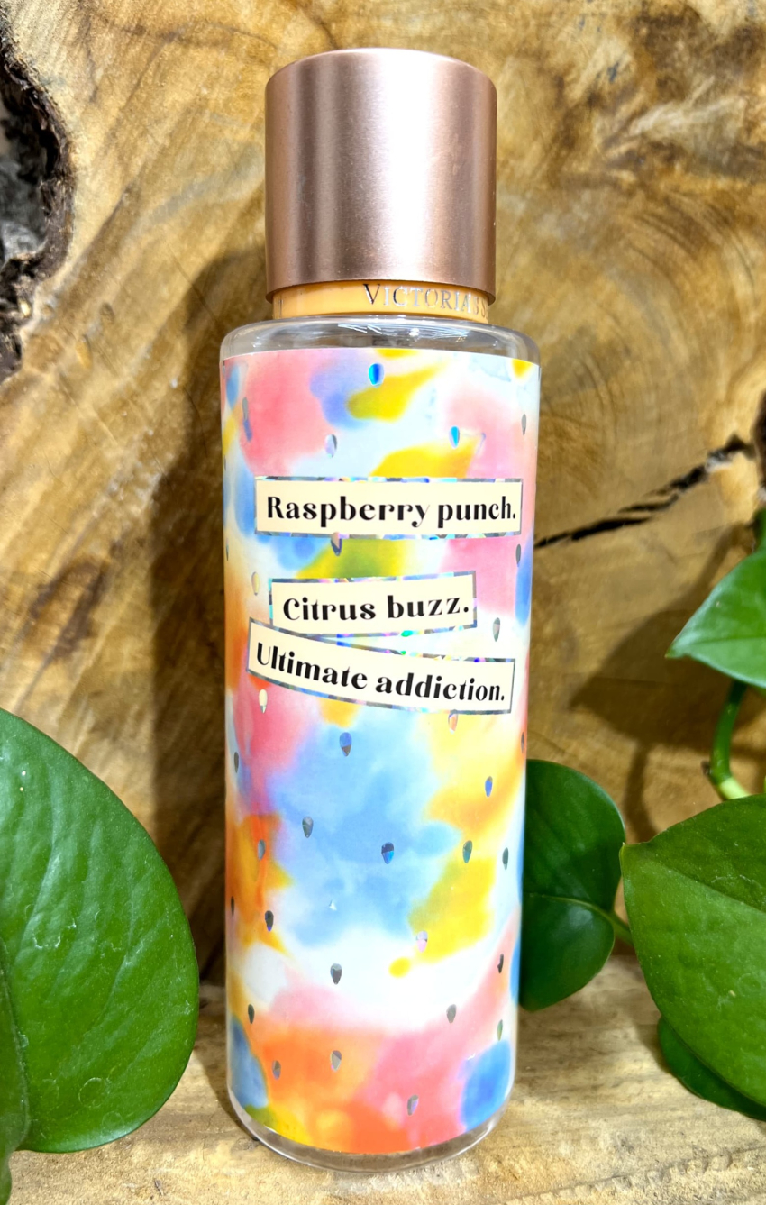 بادی اسپلش ویکتوریا سکرت مدل Fruit Crush یک محصول خوشبوکننده بدن با رایحه میوهای و گلی است. مشخصات و ویژگیها: رایحه: ملایم و شیرین با نتهای غالب تمشک (Raspberry punch) و مرکبات (Citrus buzz). نوع محصول: بادی اسپلش (Body Splash) یا بادی میست (Body Mist). حجم: 250 میلیلیتر. کاربرد: خوشبوکننده بدن. آبرسان و نرمکننده پوست. ایجاد شادابی و طراوت در پوست. شعار: این محصول با شعار "Ultimate addiction" (اعتیاد نهایی) معرفی شده است