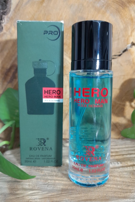 عطر روونا هیرو من (Rovena Hero Man) یک ادوپرفیوم مردانه با رایحهای خنک و تند است. ویژگیهای اصلی: طبع: خنک و تند. مناسب برای: آقایان، به ویژه افرادی که تمرکز بالایی بر اهداف خود دارند و به دنبال عطری انرژیبخش هستند. فصل: مناسب برای فصول گرم سال. نتهای بویایی: نت اولیه: اسطوخودوس، سیب سبز، گریپ فروت، ریحان. نت میانی: خس خس و اسطوخودوس. نت پایه: مشک، سدر و لادن. گروه بویایی: آروماتیک و چوبی. حجم: ۳۰ میلیلیتر.